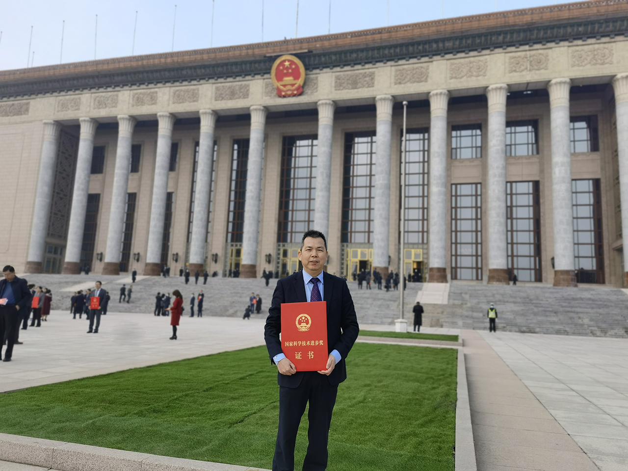 11月3日,浙江上洋機(jī)械股份有限公司總經(jīng)理黃劍虹手捧獲獎證書在北京人民大會堂門口拍照留影——公司與安徽農(nóng)業(yè)大學(xué)等單位聯(lián)合申報的《綠茶自動化加工與數(shù)字化品控關(guān)鍵技術(shù)裝備及應(yīng)用》獲得國家科學(xué)技術(shù)進(jìn)步獎二等獎!